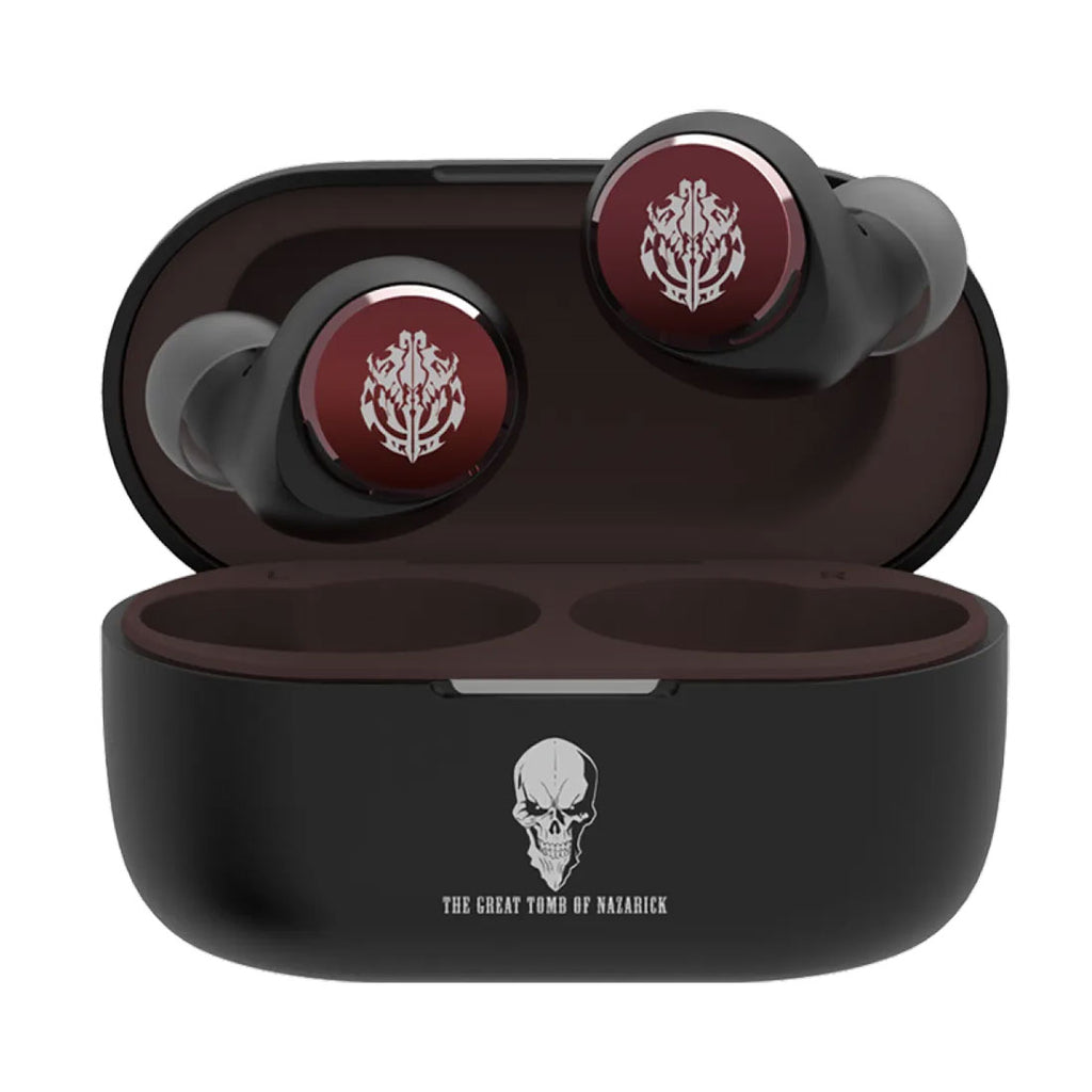 - 充電盒上有安茲大人的剪影設計,耳機本體刻有納薩力克的徽章