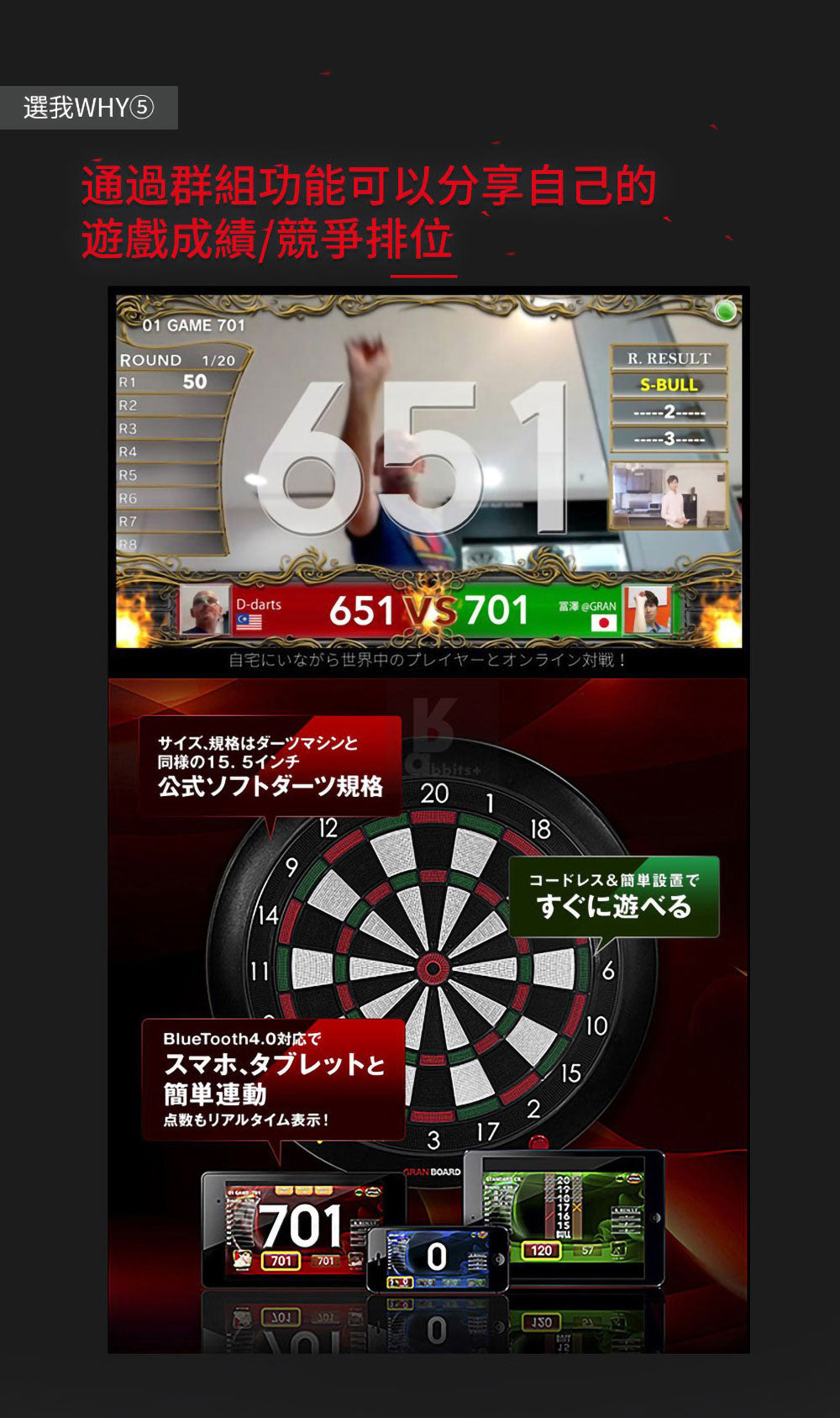 • 遊戲除了01及CRICKET之外,其餘PARTY GAME可再經由APP下載