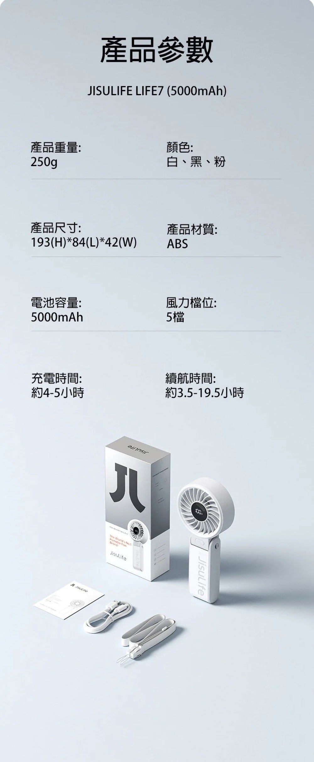 JISULIFE 幾素 | 掛頸座檯手提三用充電風扇 Life7