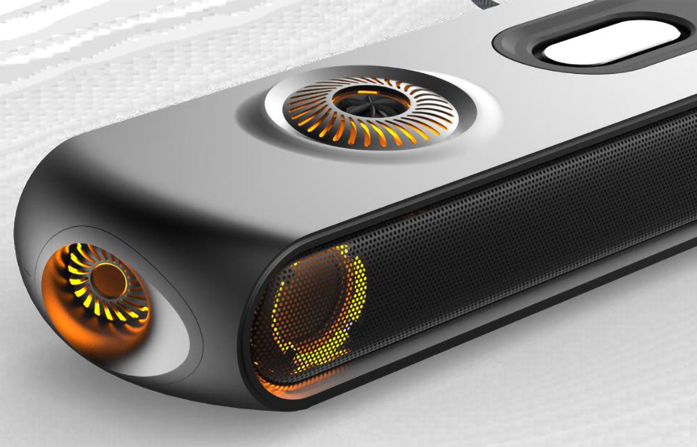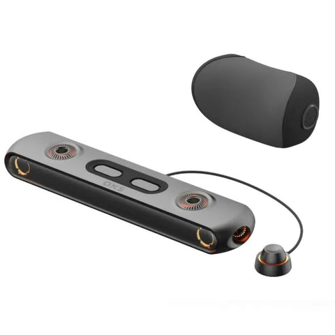• OXS 首創的衛星獨立頸枕喇叭,只需像一般頸枕縛在電競椅頭枕位置,即可提供 2 個額外聲道,比一般牆壁反射式 360 度全景聲更具質量感、且有超低延遲的優點