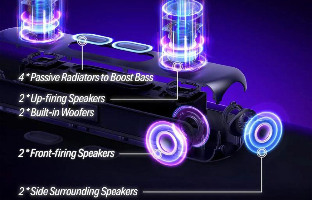 • OXS Thunder Pro+ 單支 soundbar 內包含 10 個不同用途的喇叭單元支援