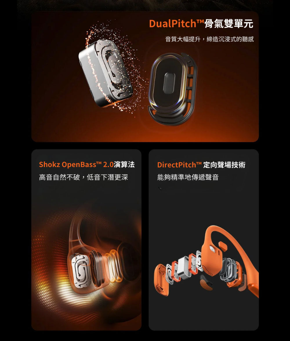 • Shokz 自研的DirectPitch 定向聲場技術,打造立體環繞的音樂體驗